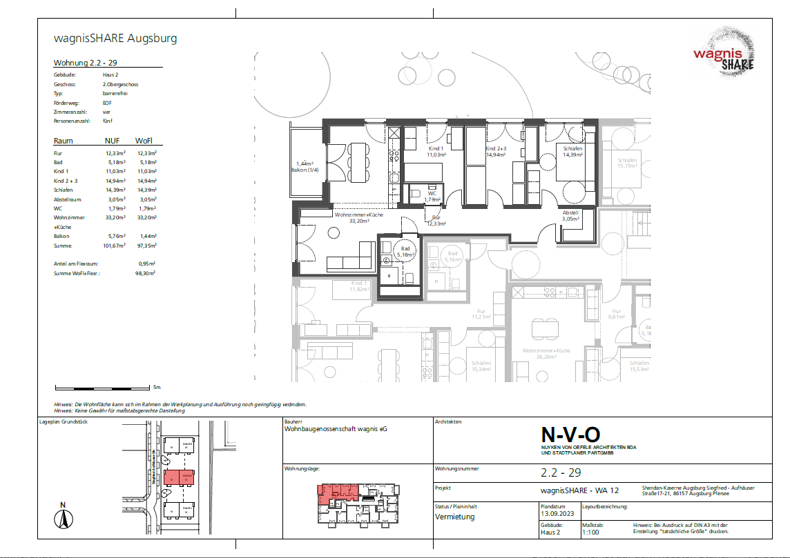 Wohnberechtigungsschein vom Amt für Wohnbauförderung und Wohnen in Augsburg erforderlich, Belegung mit 5 Personen |
