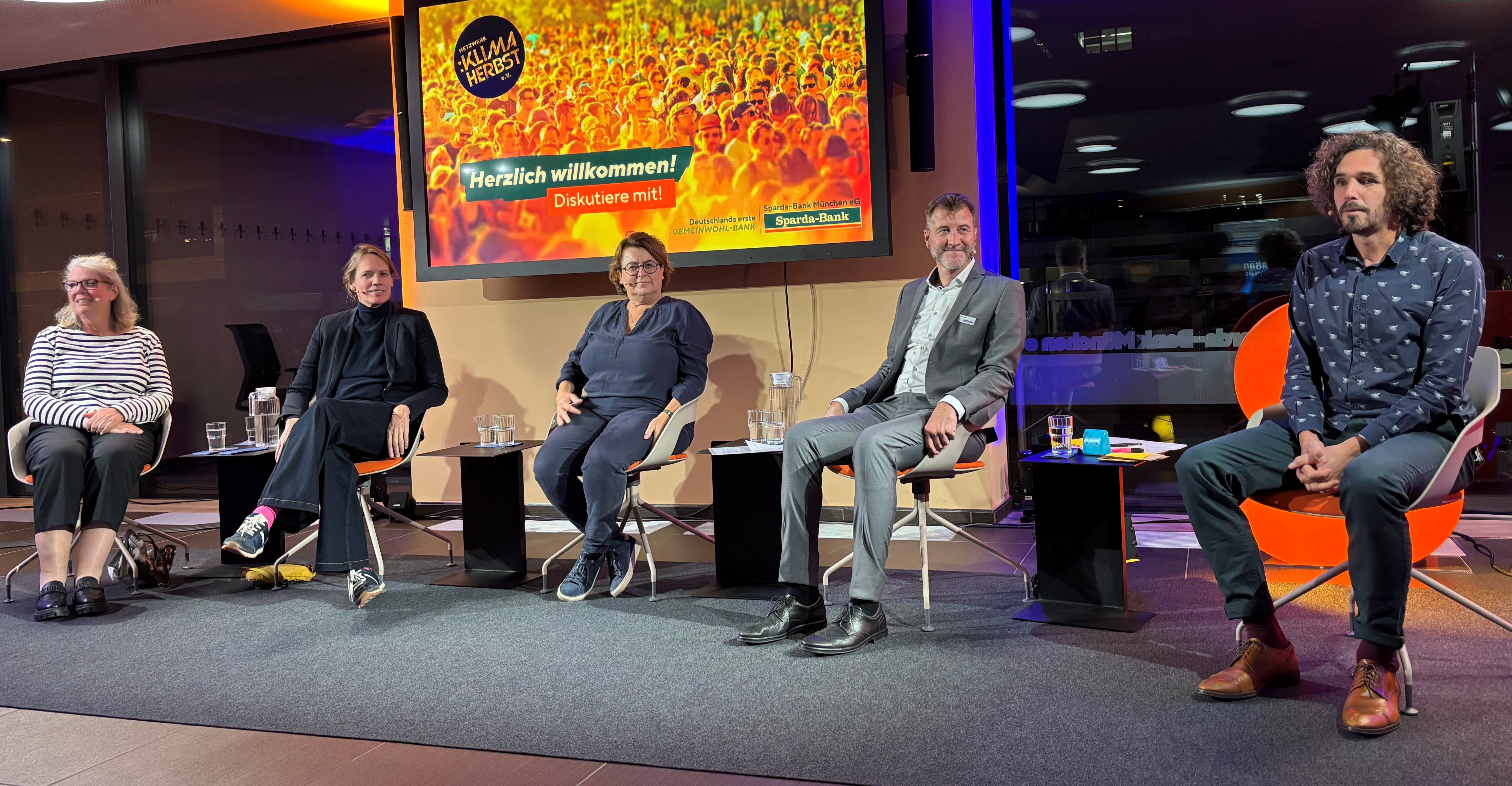 Sie sind in völlig unterschiedlichen Branchen tätig, aber in einem sind sie sich einig: vom genossenschaftlichen Modell sind alle vier begeistert. Das wurde bei der Veranstaltung zum Münchner Klimaherbst, zu dem die Sparda-Bank München eingeladen hatte, deutlich. Zum Thema „Demokratie in Aktion – Genossenschaften als Antwort auf Klimakrise, Machtungleichheit und soziale Spaltung?“ diskutierten wagnis-Vorständin Elisabeth Braun, die Vorständin der FoodHub eG, Kristin Mansmann, die Vorständin vom Bellevue di Monaco, Barbara Bergau, und Peter Berger, Vorstandsvorsitzender der Sparda-Bank München eG, die Moderation übernahm Thorsten Bühner.