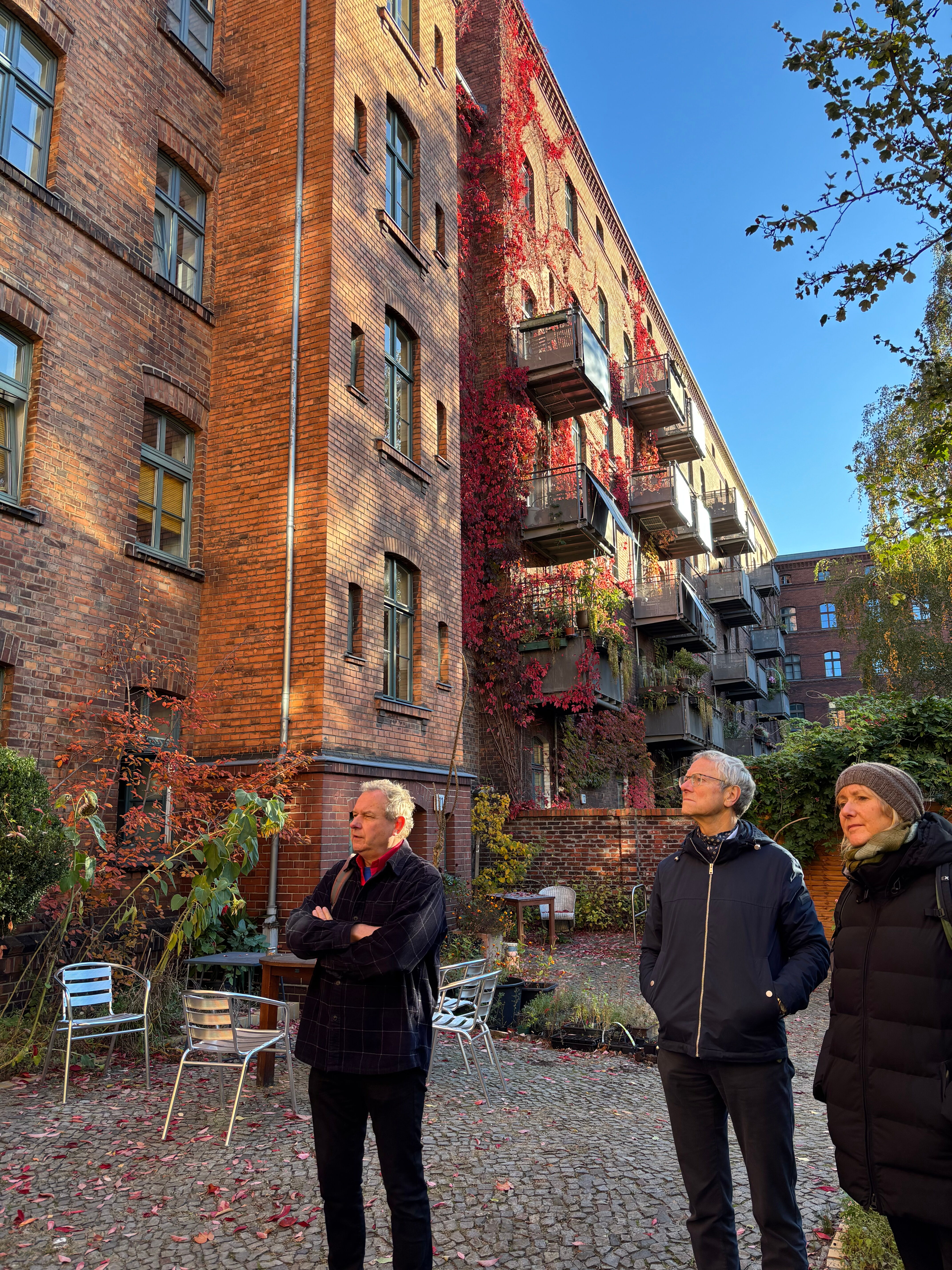 Am Samstagvormittag stand der Besuch der Bremer Höhe eG am Prenzlauer Berg auf dem Programm. Sie wurde im gleichen Jahr wie wagnis gegründet, nämlich 2000. Allerdings entstand sie aus einer Mieterinitiative, die den Verkauf ihrer Häuser an einen privaten Investor verhindern wollte. Vorstand Ulf Heitmann konnte einen wahren Krimi davon erzählen, wie es der neugegründeten Wohnbaugenossenschaft im April 2000 gelang, innerhalb von wenigen Tagen 27 Millionen Mark für den Kauf und 50 Millionen Mark für die Sanierung der 521 Wohnungen aufzutreiben. Die viergeschossigen Häuser an der Schönhauser Allee wurden ab 1870 gebaut. Bei der Sanierung von 2001 bis 2003 wurden viele kleine Wohnungen zusammengelegt, so dass familiengerechte Wohneinheiten entstanden. Dazu kommen Gewerbeeinheiten und Gemeinschaftsräume.
